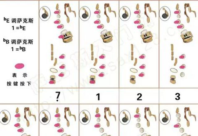 最全最實用的薩克斯指法表!通過學習本文為大家整理的薩克斯指法表,你會發現薩克斯所有調的指法并不需要死記硬背,皆是有規律可尋的,認真分析學習規律,即可輕松掌握。 薩克斯是全調性的樂器,在12個大調中最重要的是:C調、降E調(bE)、降B調(bB)。C大調是基礎樂理,也是轉換各調性的基礎。降E和降B則是薩克斯的主調,降B大調同時也是很多管樂器主調,例如單簧管。降E調則最好練,大部分的初學者是從本調開始入門。